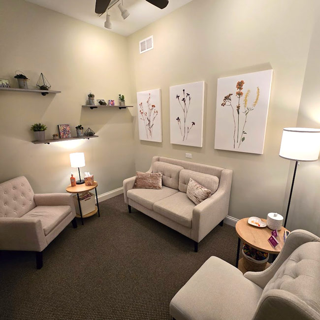 Turn into the Fox Glen Professional Offices off of IL Rt. 22. We are located in the first building on the left. Our office is the first door on the right after entering the building. Upon arrival for a session, please have a seat in the waiting area, and your counselor will call you in when ready.